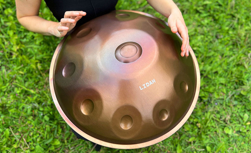 - Mini Handpan (43 cm) → Compact, licht en makkelijk te bespelen. Gemaakt van roestvrij staal met een heldere, sprankelende klank en lange resonantie. Perfect voor kleinere spelers, reizen of wie op zoek is naar een draagbare optie—zonder in te leveren op warmte en geluid. Varianten beschikbaar met 7 of 9 tonen.
