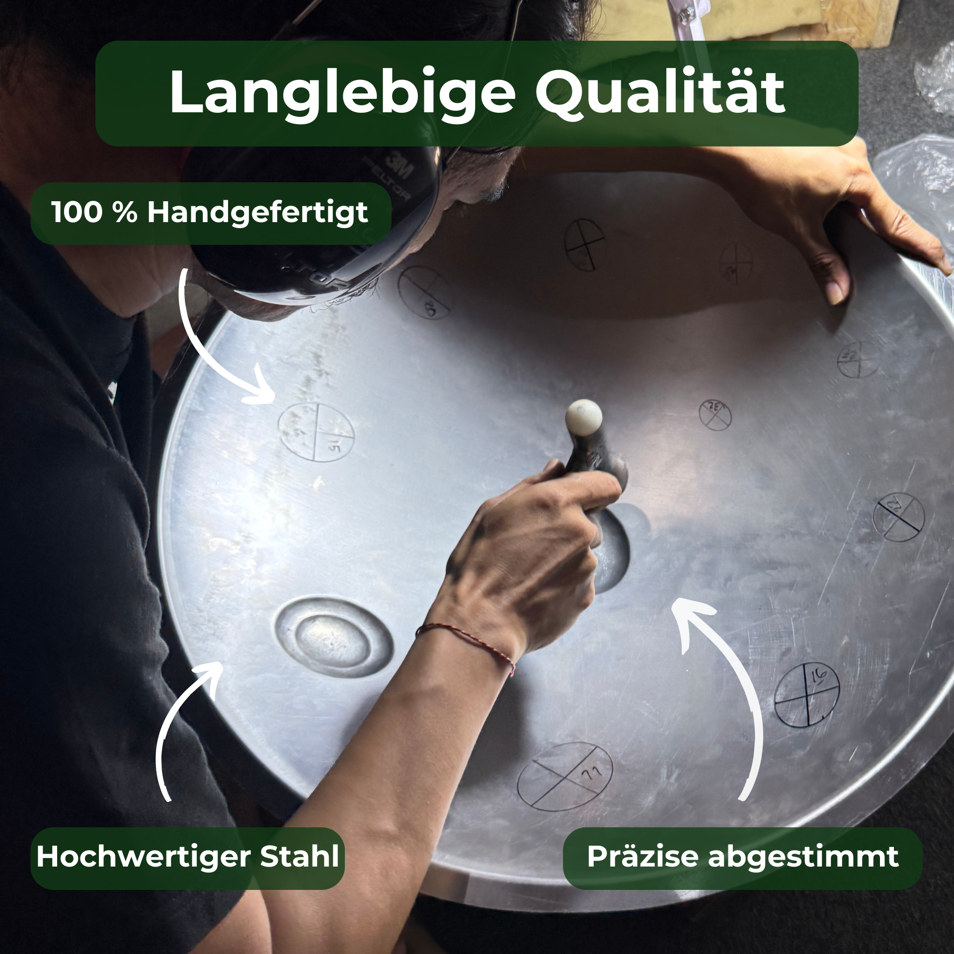 ✔ Lebenslanger Support und Service, falls Sie Ihr Handpan irgendwann erneut stimmen lassen möchten