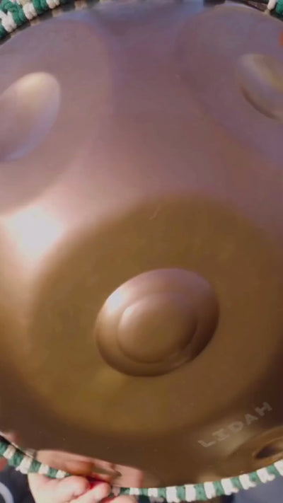 Mini Handpans haben einen Durchmesser von 43 cm und sind mit 7 oder 9 Tönen erhältlich. Sie sind leicht, einfach zu spielen und perfekt für Anfänger, kleinere Spieler oder alle, die ein mobiles Instrument mit warmem, resonantem Klang suchen.