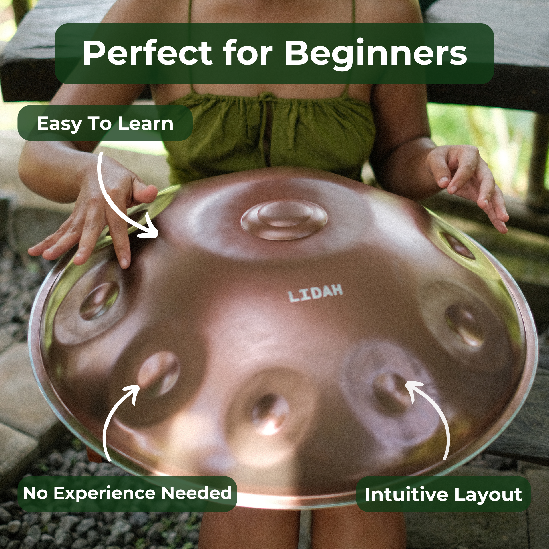 Most beginners can play simple rhythms within days. With practice, you’ll quickly discover more patterns and techniques. To support your journey, every handpan includes free lifetime access to the Master the Handpan course: over 70 step-by-step video lessons. This makes learning fun and accessible at your own pace.