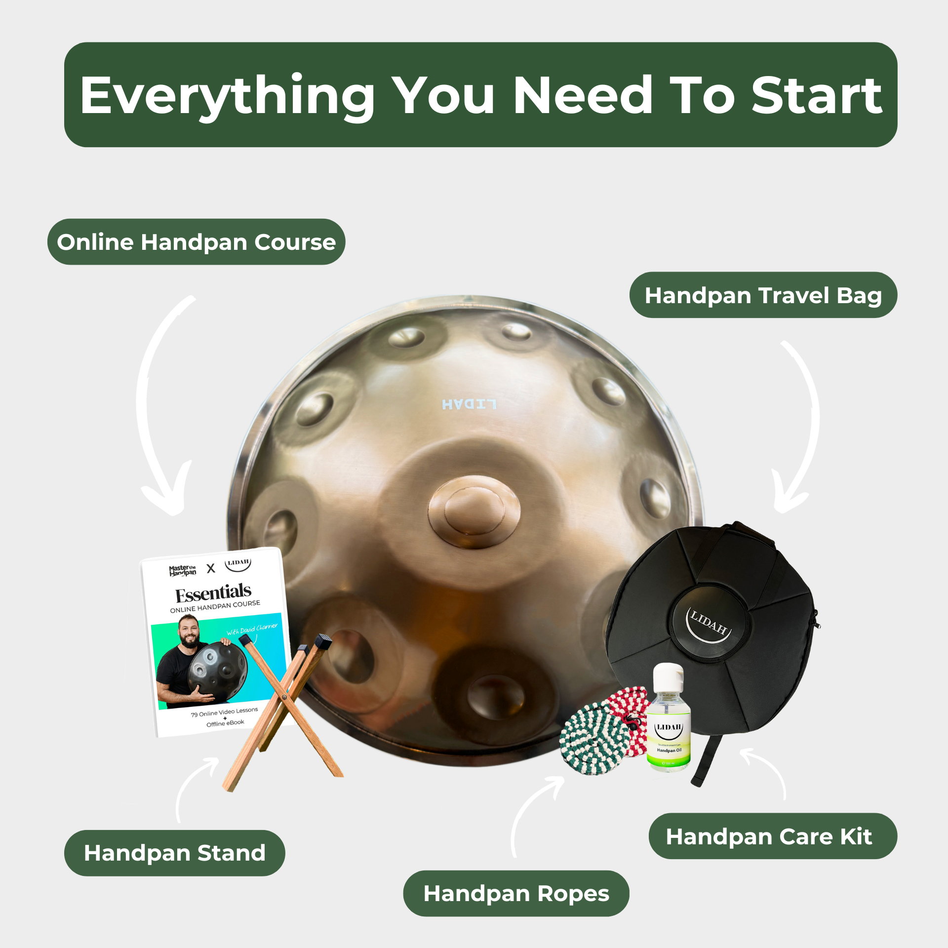 When you order a LIDAH handpan, you don’t just receive an instrument, you receive a complete package to start your journey right away: