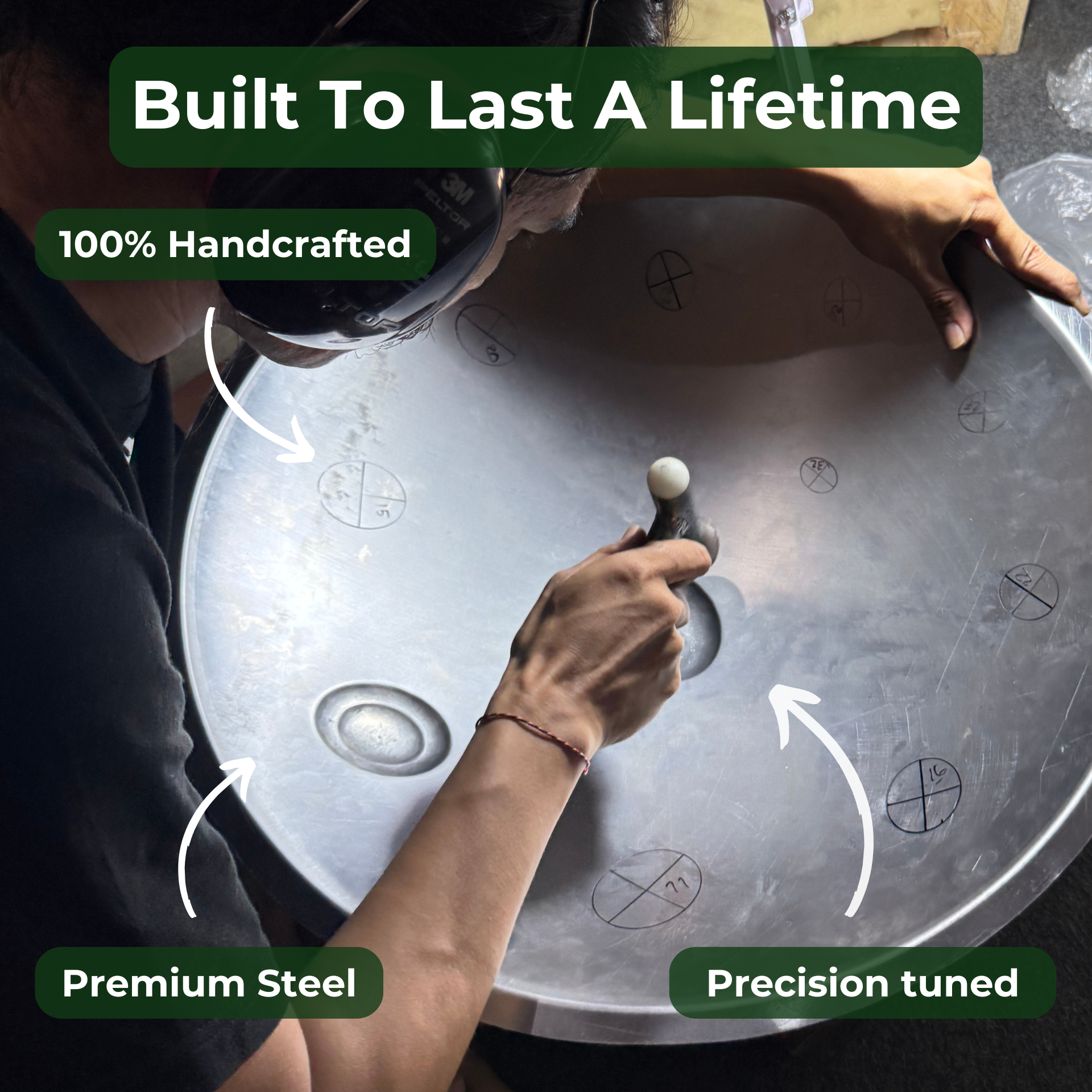 All our instruments are handcrafted in our Bali workshop by our small, experienced team. Each handpan is shaped, tuned, and finished with precision and care, combining craftsmanship with modern innovation. The result: instruments with soul, made to inspire for years to come.