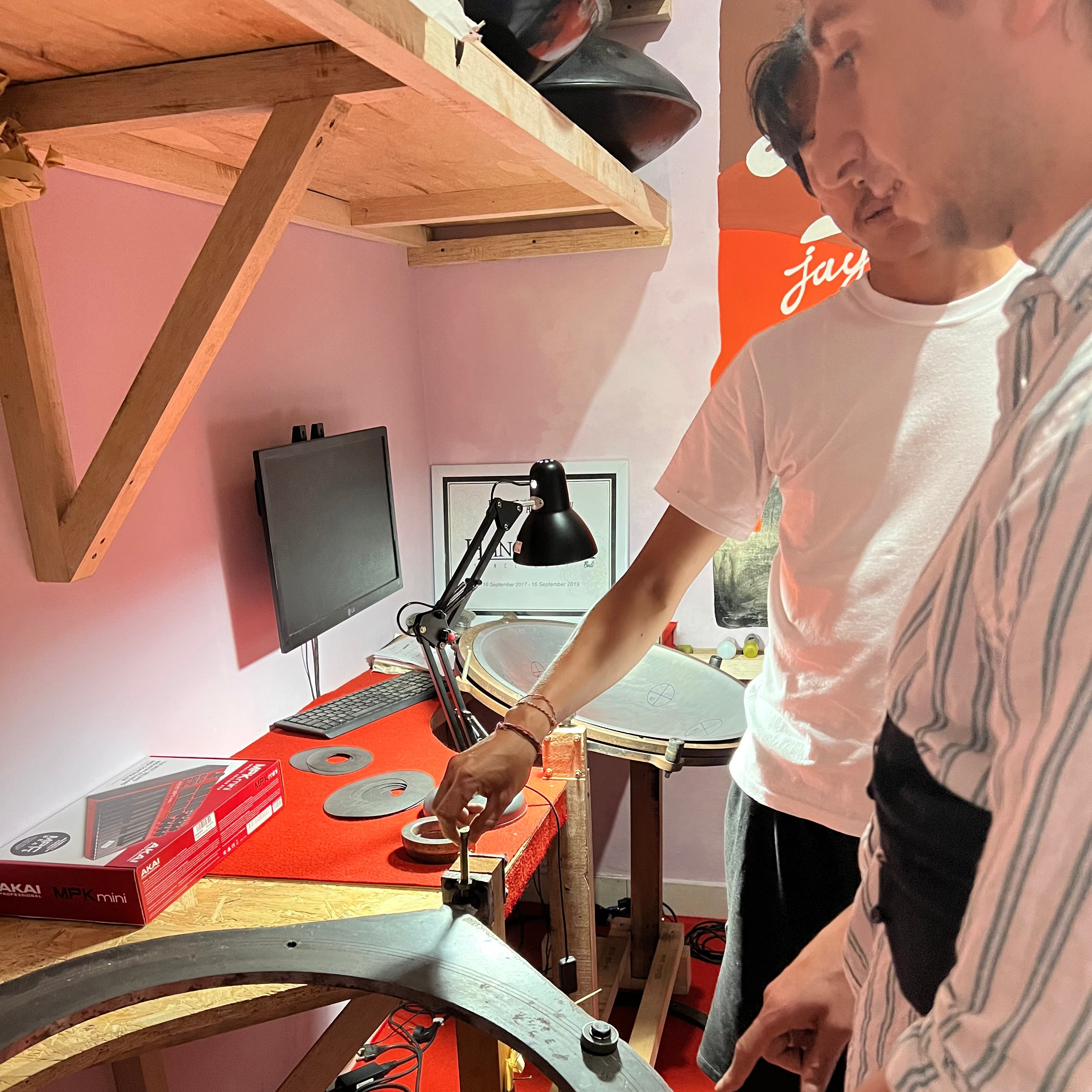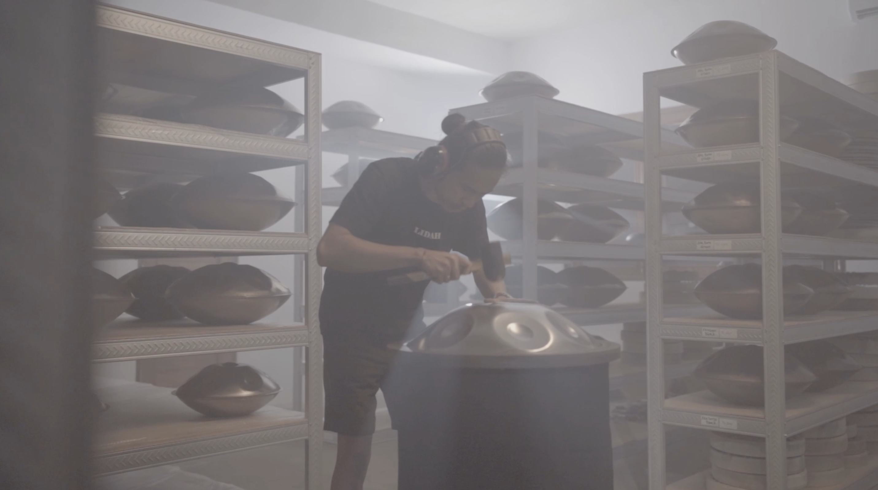 De allereerste LIDAH-handpan wordt geboren — nog niet perfect, maar doordrenkt van passie. Vrienden en lokale muzikanten beginnen erop te spelen en delen hun feedback.