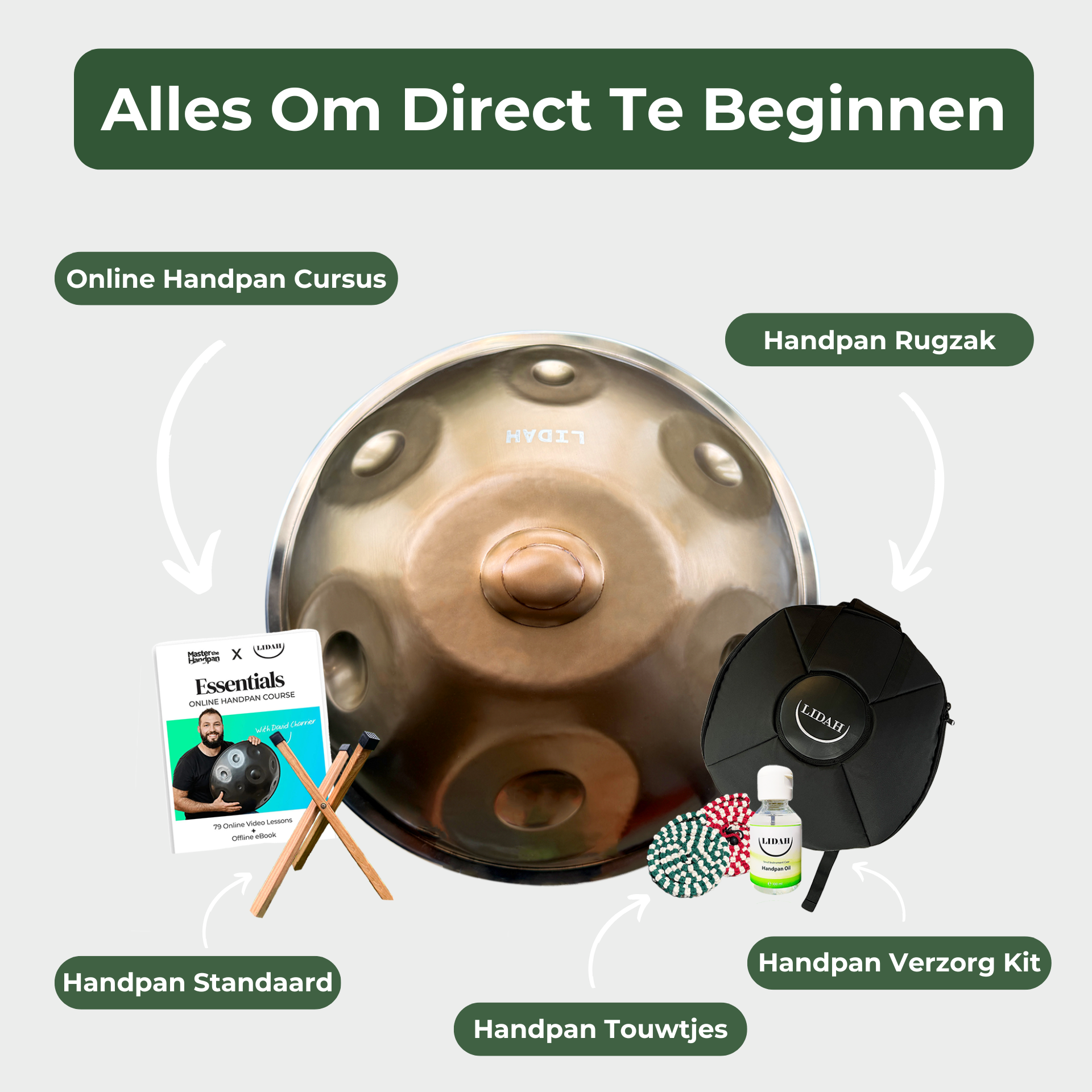 Bij een LIDAH handpan ontvang je niet alleen een instrument, maar een compleet pakket om meteen van start te kunnen: